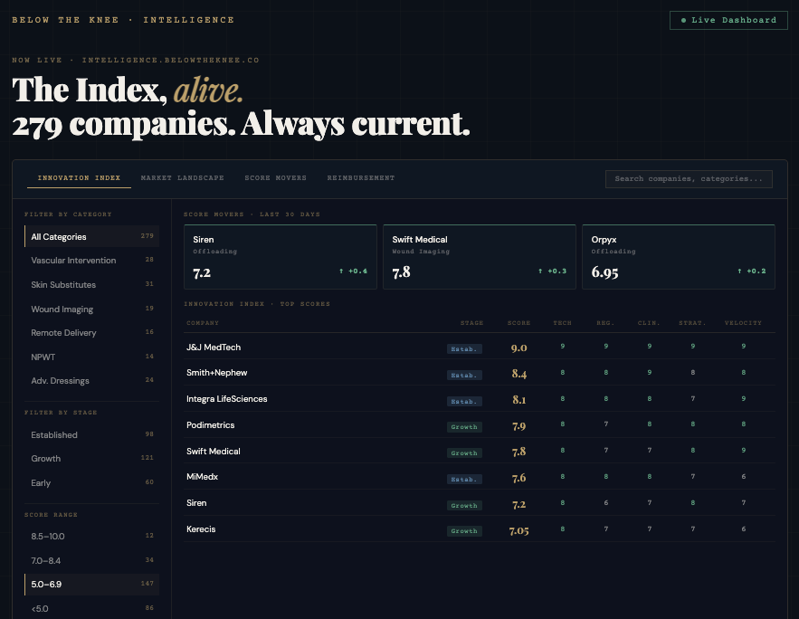 Below the Knee exists to separate signal from noise across wound care, limb salvage, and foot & ankle — tracking the deals, policy shifts, capital flows, and clinical inflection points that actually move this market.